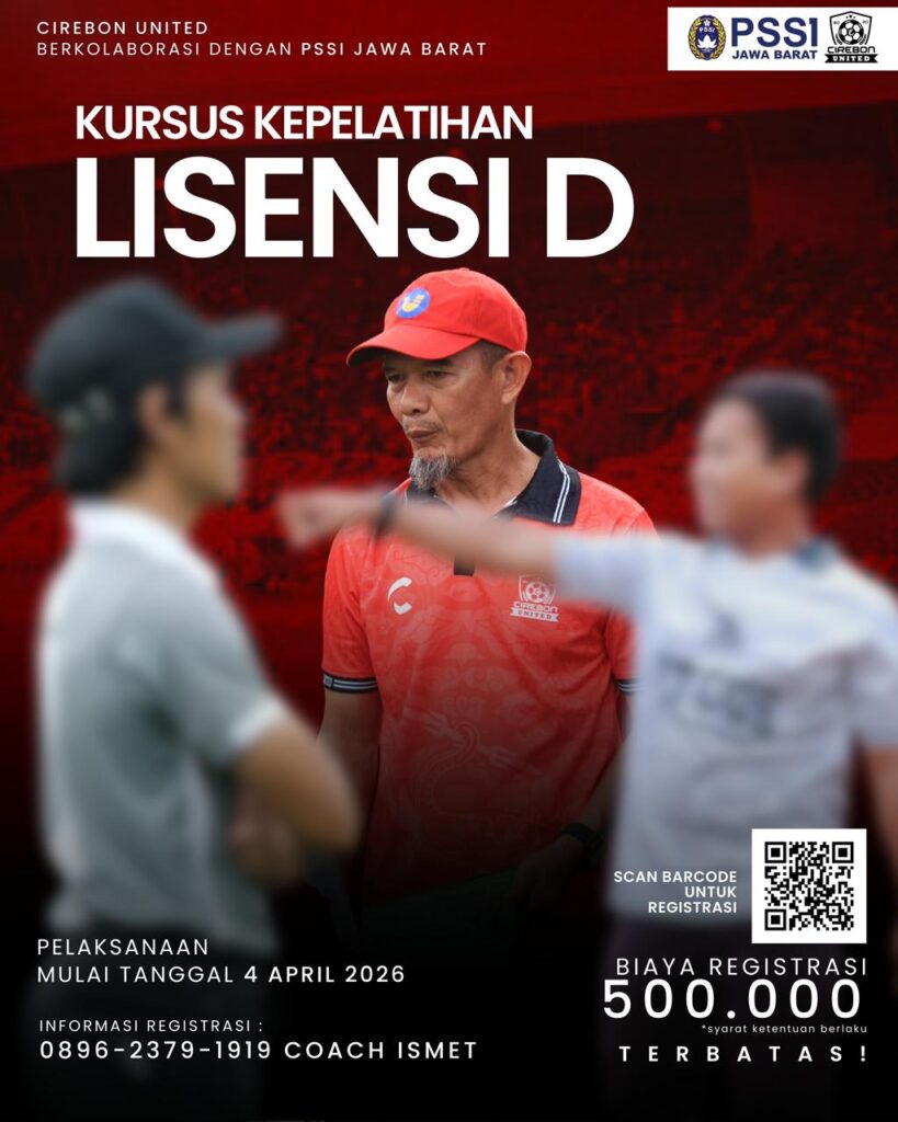 Kota Cirebon, Jawa Barat – Cirebon United bekerja sama dengan PSSI Jawa Barat akan menyelenggarakan Kursus Pelatih Lisensi D PSSI pada April 2026 di Kota Cirebon. Kegiatan ini menjadi bagian dari komitmen bersama dalam meningkatkan kualitas dan profesionalisme pelatih sepak bola di wilayah Cirebon dan sekitarnya.